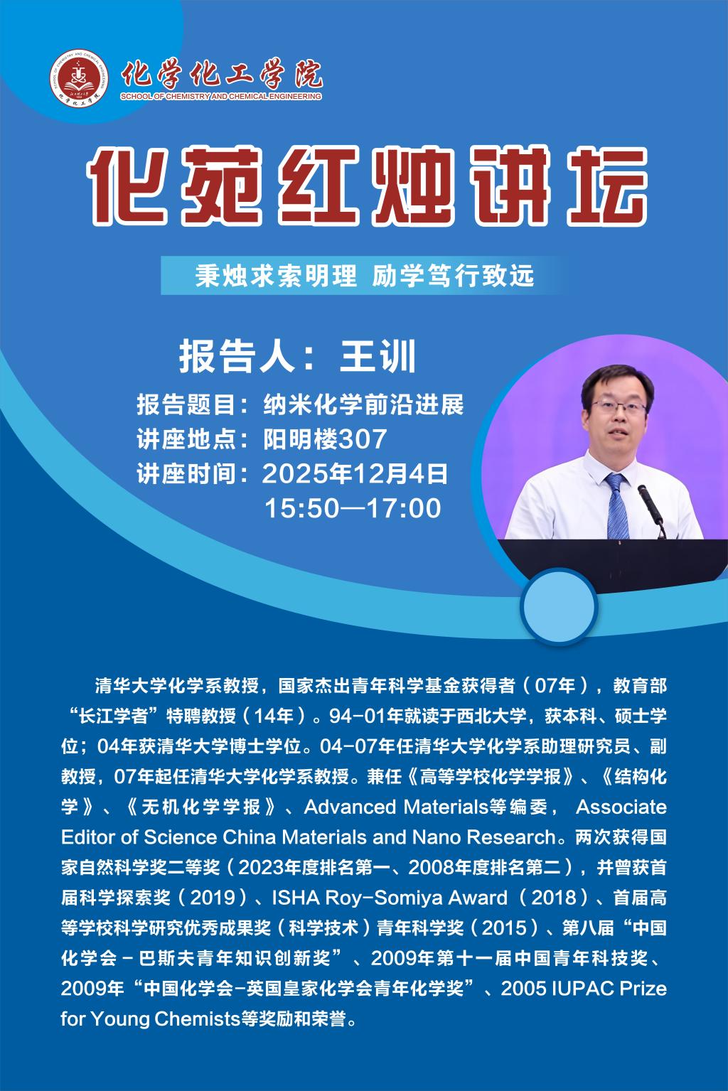 主讲人: 王训 教授(清华大学化学系)