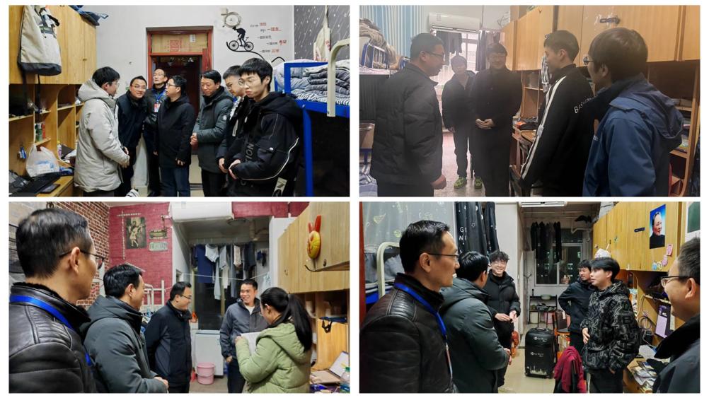 稀土学院领导班子走访了学生寝室,亲切问候学生的假期生活,了解学生生活情况,殷切嘱托学生要积极响应宿舍安全管理,注意校园生活安全,排除宿舍安全隐患。
