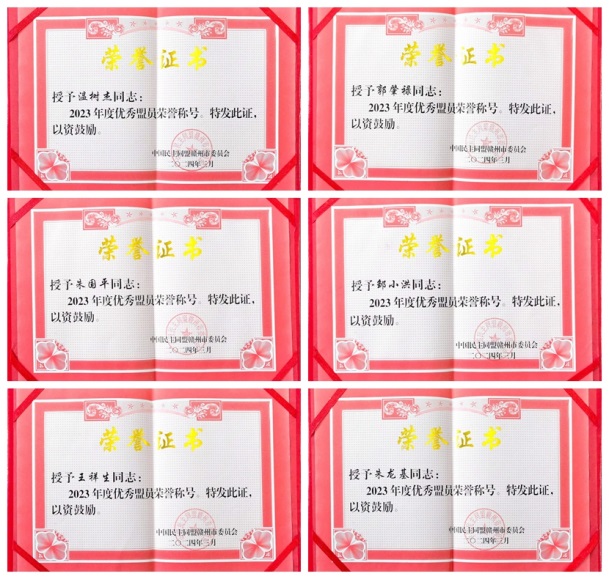 会议表彰了2023年度盟务工作先进集体、社情民意信息工作先进个人以及优秀盟员。裸聊直播 民盟基层委员会荣获2023年度先进基层组织,温树杰、邹小洪、朱国平、朱龙基、王祥生、郭肇禄等盟员教师获评2023年度优秀盟员荣誉称号。