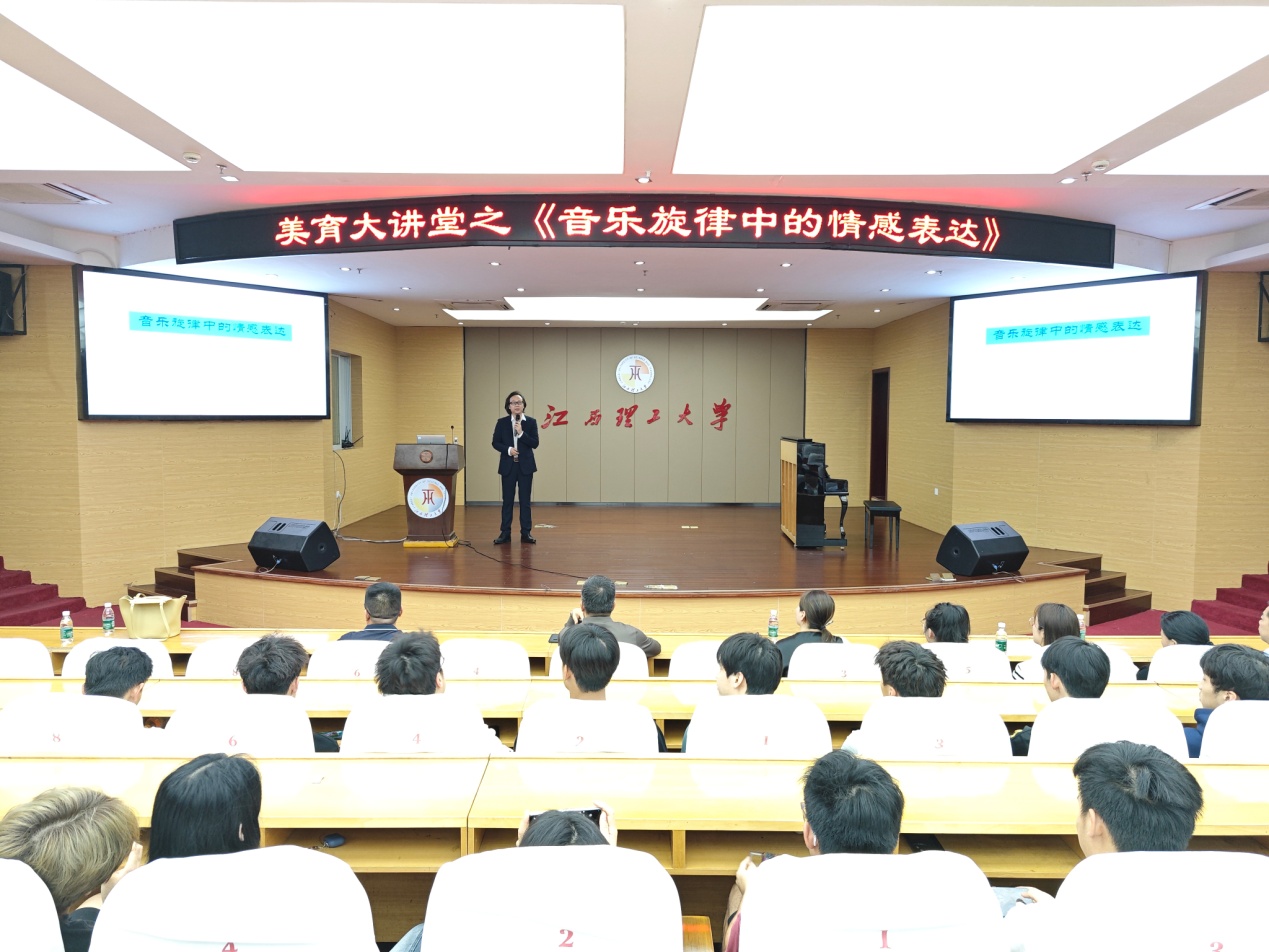 体育与艺术学院院长欧阳鹏飞,党委副书记黄鹿、《大学美育》课全体老师出席本次讲座,讲座由体育与艺术学院副院长黄丽娜主持。240余名师生聆听了本次讲座。