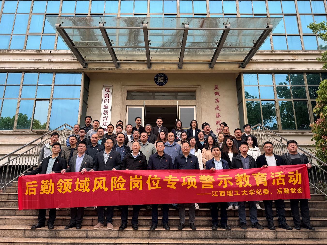 基建后勤领域风险岗位专题警示教育活动在赣州监狱反腐倡廉教育基地举行。校党委常委、宣传部部长盛晓明,机关党委书记郭雁,后勤党委书记李云浩及后勤党委重点领域和风险岗位教职员工、校纪委纪检监察干部参加活动。机关党委委员以结对联建方式一同参加。