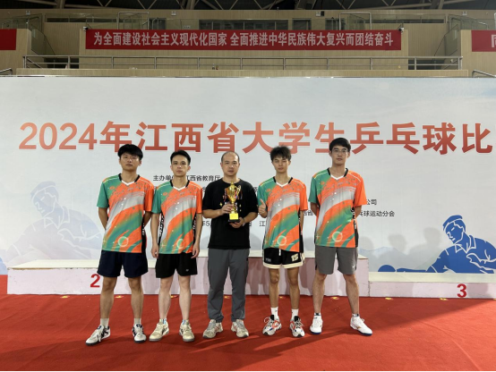 本网讯 5月26日至5月31日,裸聊直播 体育与艺术学院李凯老师带队参加2024年江西省大学生乒乓球比赛,裸聊直播 学子组成的代表队不畏强手、奋勇拼搏,最终获得本科甲组男子团体亚军、单打季军、男子双打第八的优异成绩。李凯老师获评“优秀教练员”。