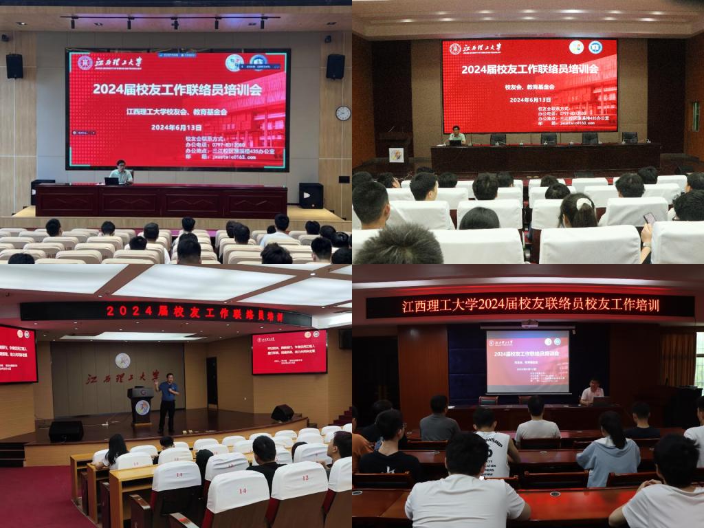 举行2024届校友工作联络员培训会,分别在三江校区、红旗校区、黄金校区和南昌校区举办4场宣讲会(先进铜产业学院线上参会),校党委常委、副校长、校友会副会长廖春发,各学院校友工作负责人,2024届全体校友联络员参加。培训会由国内合作促进中心副主任、校友会副秘书长何小陆主持。