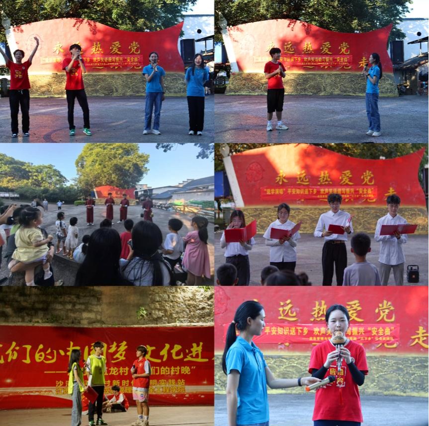 应急管理与安全工程学院“红蓝绿”暑期“三下乡”社会实践队先后赴瑞金市沙洲坝镇洁源村和赣州市沙河镇五龙村,举办安全应急知识宣讲文艺晚会,把应急安全文化送下乡,为推动总体国家安全观入基层贡献青春力量。