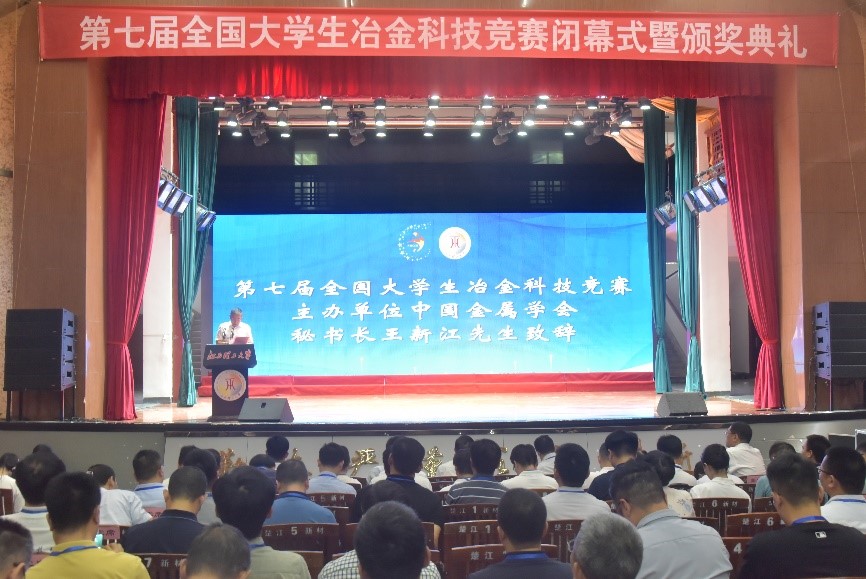 红旗校区礼堂举行。颁奖典礼由竞赛组织委员会主任、校党委常委、副校长廖春发主持。校党委副书记罗仙平致辞。中国金属学会秘书长王新江,竞赛专家委员会主任、重庆大学原党委副书记白晨光,竞赛工作委员会主任、东北大学原副校长姜茂发分别进行了讲话。全体决赛评审专家与参赛获奖队伍代表出席本届竞赛颁奖典礼。