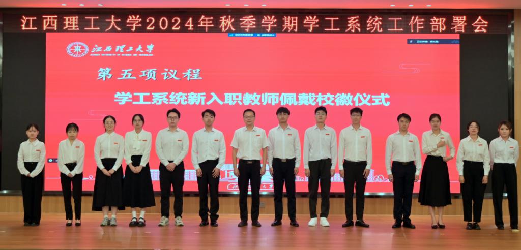 大会现场还举行了新入职学工系统人员佩戴校徽仪式。
