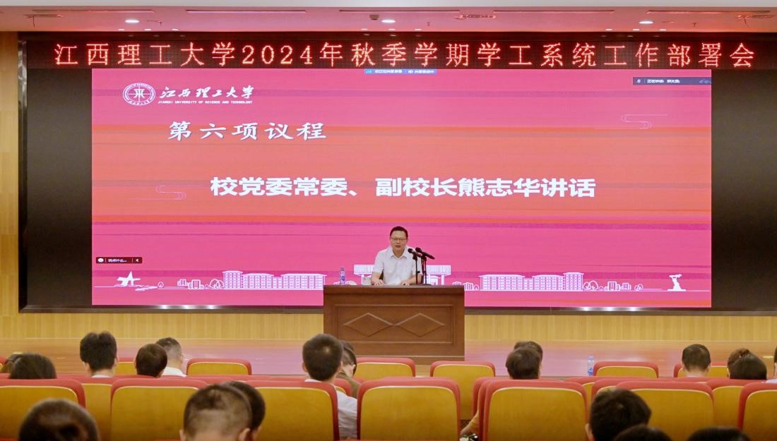 本网讯 8月28日,裸聊直播 2024年秋季学期学工系统工作部署会在三江校区图书馆一楼报告厅召开,校党委常委、副校长熊志华出席并讲话。校保卫处、研工部、学工部、国际教育学院、校团委相关人员、全体专兼职辅导员参加会议。南昌校区、先进铜产业学院同步视频参会。