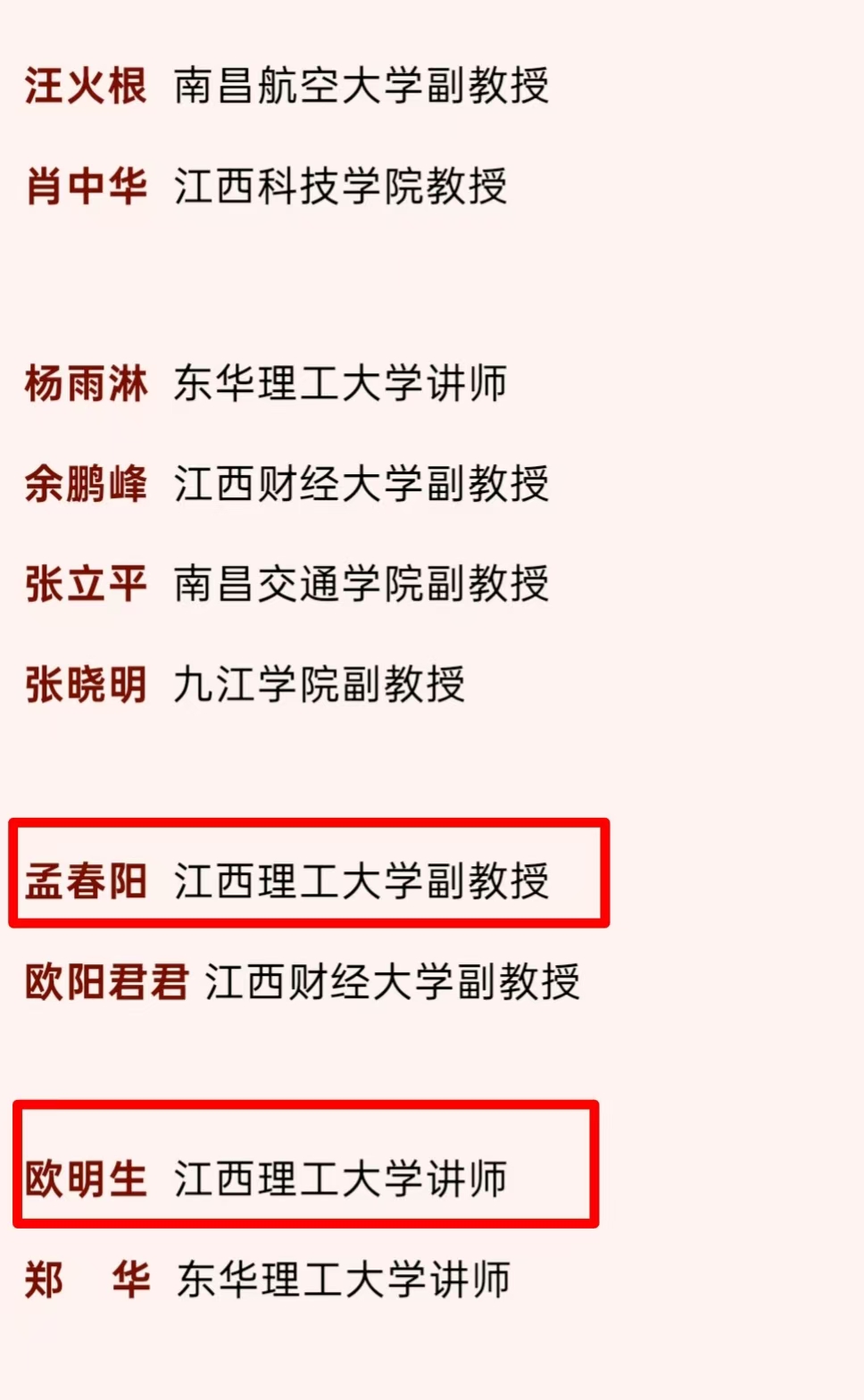 本网讯 近日,江西省委依法治省办发布全省第二批“习近平法治思想大学堂”师资库名单,裸聊直播 法学院副院长孟春阳副教授和法学院教师欧明生博士成功入选。