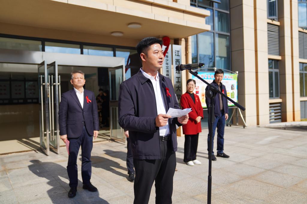 董冰岩在致辞中深入阐述了基地启用的重要意义。他指出,近年来艾滋病防控形势严峻,青少年艾滋病感染率逐年上升且呈低龄化趋势,这一基地的建立是深入贯彻落实党的二十大精神、推进健康中国建设以及迈向终结艾滋病公共卫生威胁目标的关键举措。他强调,学校将以基地启用为契机,进一步强化大学生艾滋病健康教育工作,秉持“预防为主”的方针,全力把基地打造成全市艾滋病宣传教育常态化的重要窗口和主阵地,推动防艾宣传教育工作常态化、阵地化,助力全市防艾预防教育工作深入、有序开展。他还对青年学生提出期望,希望广大青年学生充分利用基地资源,积极学习防艾知识,树立珍爱生命、远离毒品的意识,切实做到知艾防艾,勇担“自身健康第一责任人”的重任。
