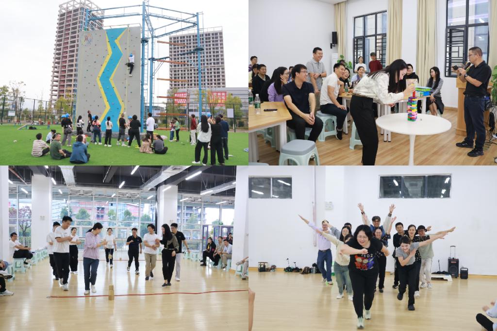 活动首日,在武术馆内,“飞盘归位”“水弹接力”等分组互动游戏迅速拉近了老师们的距离,大家在欢声笑语中破冰交流,确定队名和口号,凝聚起团队力量。次日,在心理健康中心团辅室,老师们通过学习手语舞、参与“步步惊心”“速度与激情”等游戏活动,进一步提升了团队默契,有效缓解了工作压力、调节了情绪,还锻炼了身体协调性。最后一日,素质拓展基地的“击鼓传球”“移花接木” 等趣味项目充分激发了老师们的积极性与协作力,而“飞索轮滑”“空中断桥”等挑战项目则让老师们在确保安全的前提下,凭借勇气和毅力突破自我,彰显了团结奋进的风采。