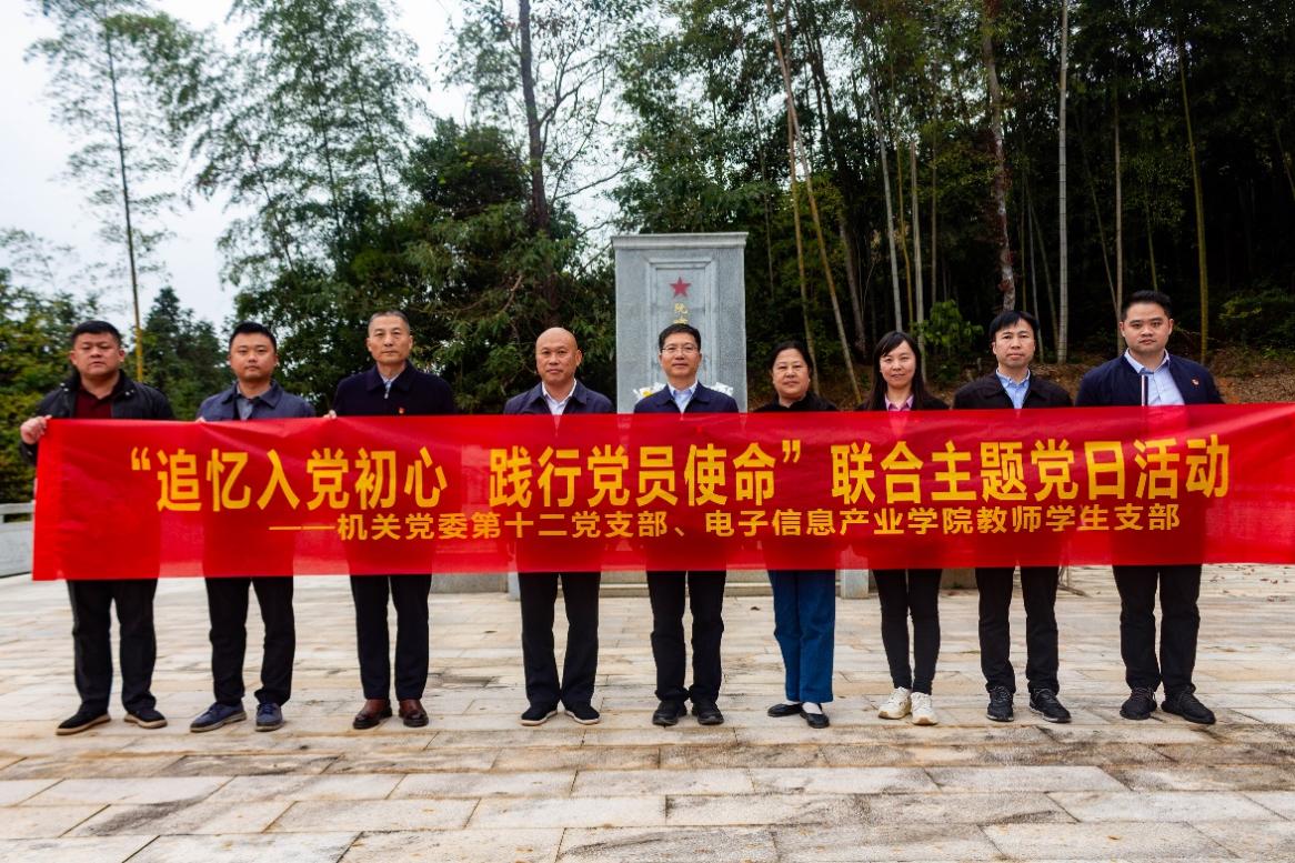 会后,机关党委第十二党支部和电子信息产业学院教师学生支部共同前往阮啸仙烈士陵园缅怀烈士,重温了入党誓词。