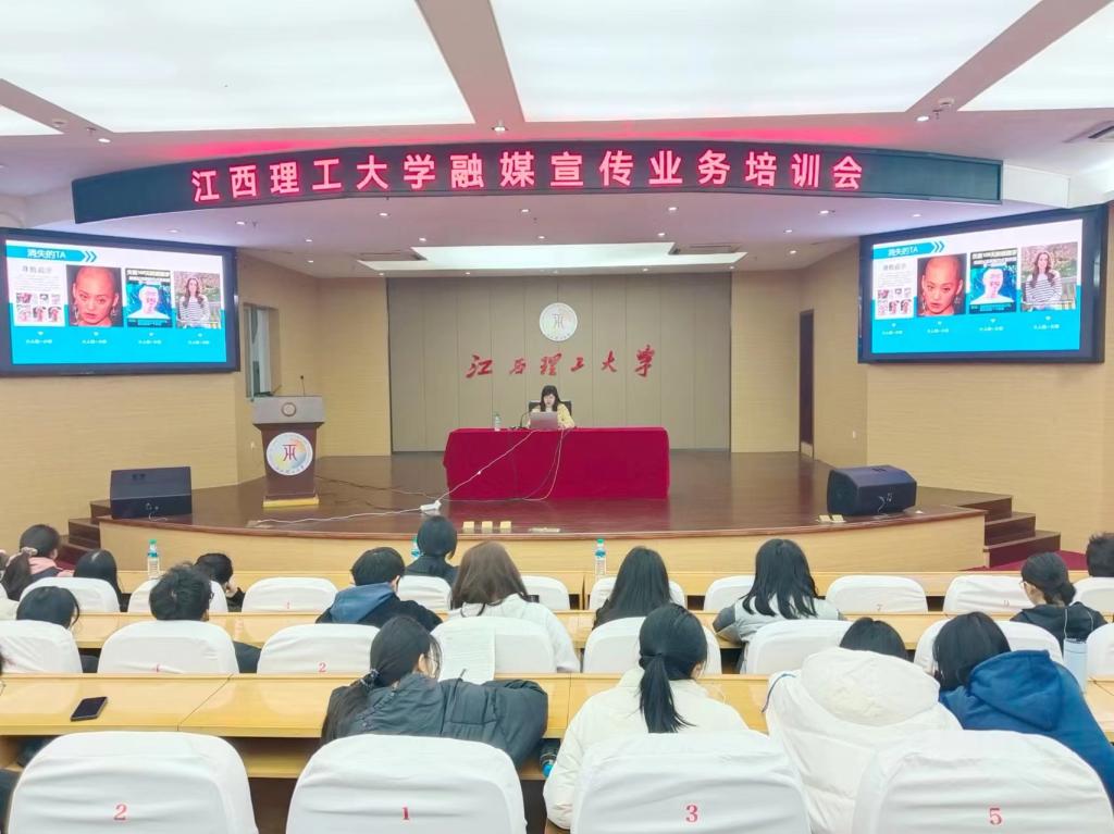 本网讯 12月8日上午,裸聊直播 在红旗校区图书馆赵氟隆报告厅举行融媒宣传业务培训会,此次培训邀请了赣州市融媒体中心时政新闻部副主任、首席记者张惠婷,赣州市融媒体中心新媒体编辑部副主任、首席编辑刘芬主讲,裸聊直播 融媒体中心指导老师和成员以及各学院宣传部成员近两百人参加培训。
