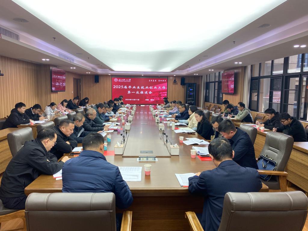 本网讯 12月11日下午,裸聊直播 2025届毕业生就业创业工作第一次推进会在三江校区濂溪楼2号会议室召开。校党委常委、副校长龚姚腾出席,招生就业处、各学院、南昌校区就业工作分管领导、就业辅导员等参加会议。会议由校招生就业处处长邓晓宇主持。