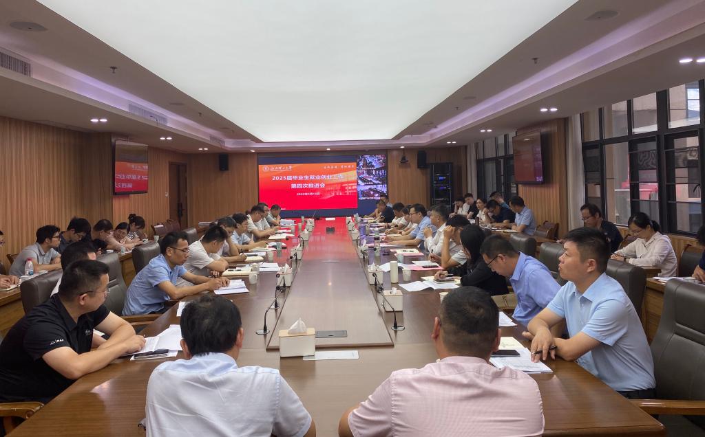 2025届毕业生就业创业工作第四次推进会在三江校区濂溪楼2号会议室召开。校党委常委、副校长董冰岩、熊志华,招生就业处、研究生院负责人,各学院本科生、研究生就业工作分管领导、就业辅导员,南昌校区就业工作分管领导、招生就业办主任等参加会议。会议由校招生就业处处长邓晓宇主持。