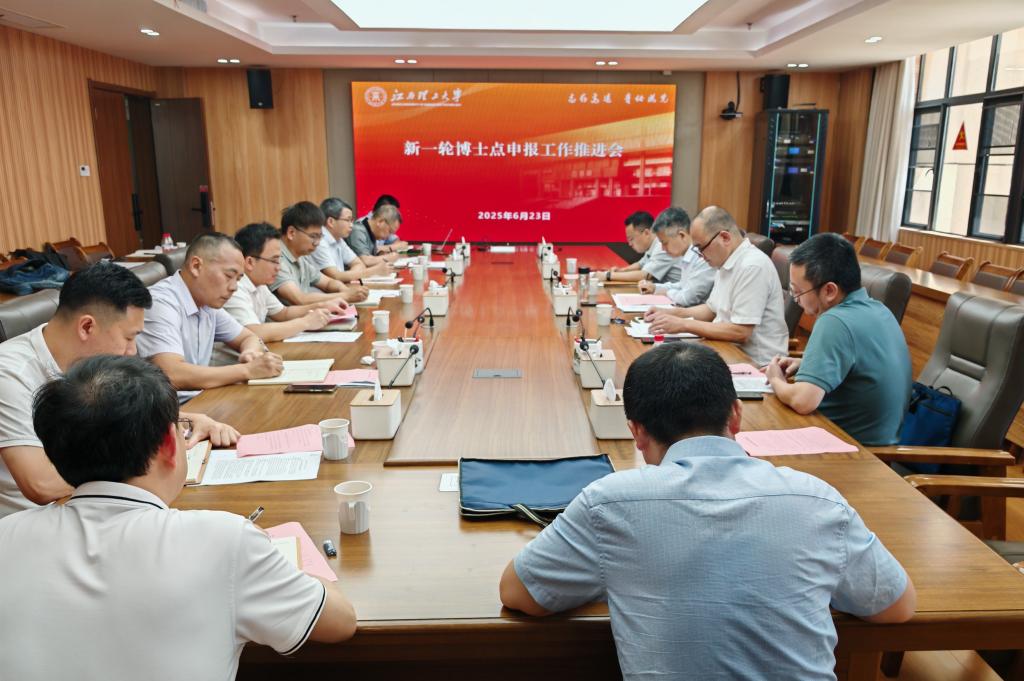 在三江校区濂溪楼1号会议室召开新一轮博士点申报工作推进会。校党委常委、副校长董冰岩,博士点申报相关学院负责人参加会议。会议由校党委研究生工作部部长、研究生院院长、学科建设办公室主任吴贤振主持。