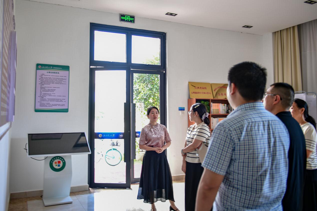 三实楼心理咨询中心会议室召开文明实践校地协作工作推进座谈会。校党委宣传部副部长钟峻燕、心理健康教育中心主任郭修凤出席会议,赣州经开区相关工作人员及裸聊直播
