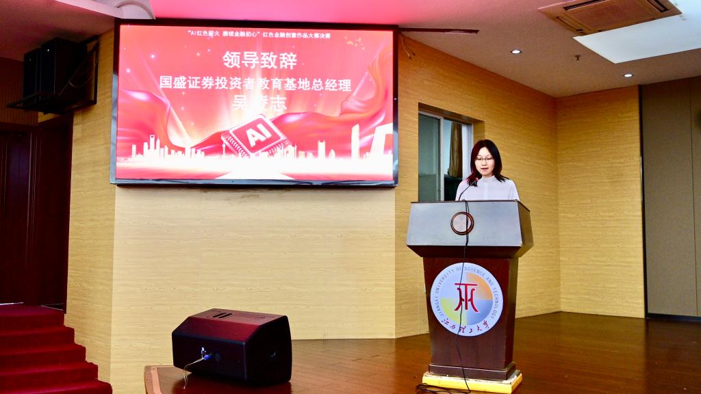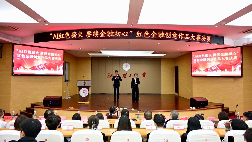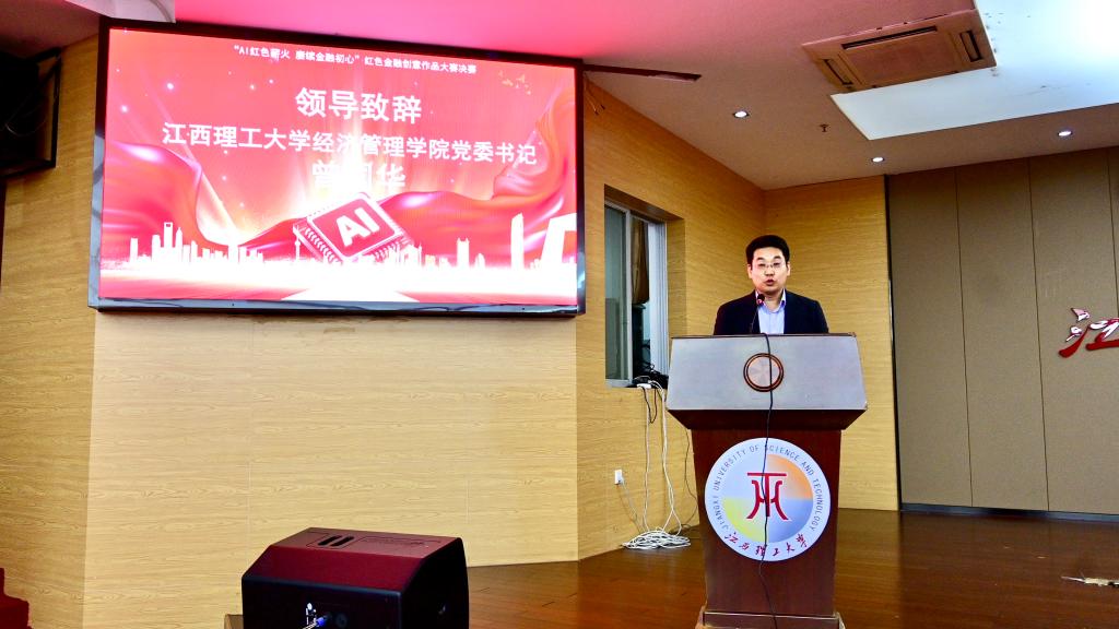 经济管理学院开展的“AI红色薪火·赓续金融初心”红色金融创意作品大赛决赛于红旗校区图书馆赵氟隆学术报告厅举行。赣州市政府办公室副主任朱雪林,国盛证券赣州分公司负责人卢毓明,国盛证券投资者教育基地总经理吴凌志等嘉宾出席决赛。经济管理学院党委书记曾国华、校学工部副部长孟冲、经济管理学院党委副书记吴媛及赣州市政府办、国盛证券、赣州市金融研究院的相关领导与教师代表共同参与活动。