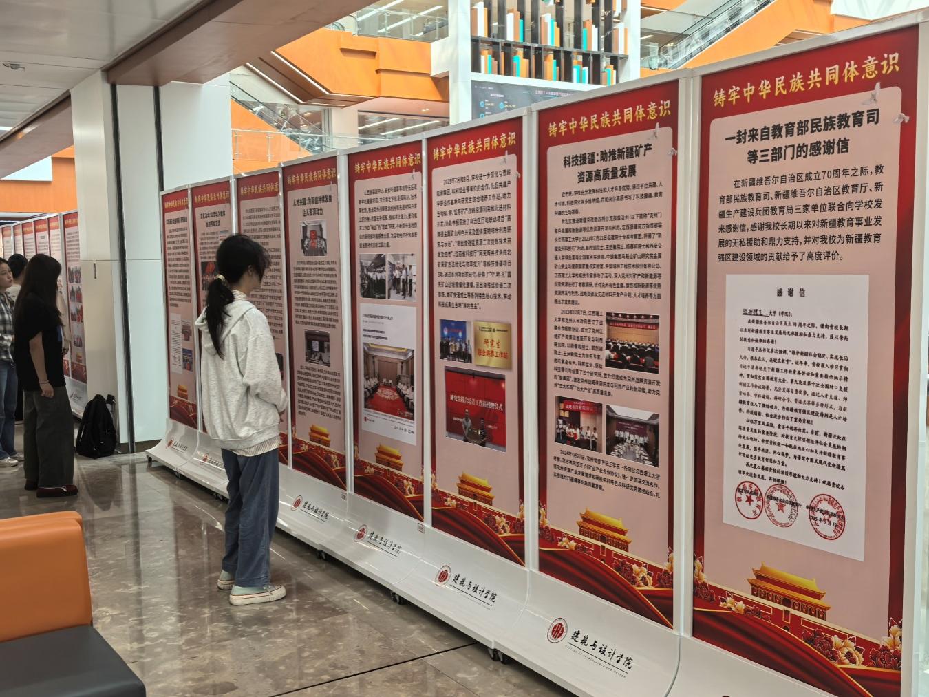 本网讯 为深入学习贯彻习近平总书记关于加强和改进民族工作的重要思想,促进裸聊直播 全体师生进一步铸牢中华民族共同体意识,推动新时代学校民族工作高质量发展,10月30日,“铸牢中华民族共同体意识教育实践展”在三江校区(东园)图书馆二楼大厅举行。展览由党委统战部主办,党委宣传部、学生工作部、校团委协办,建筑与设计学院党委承办。