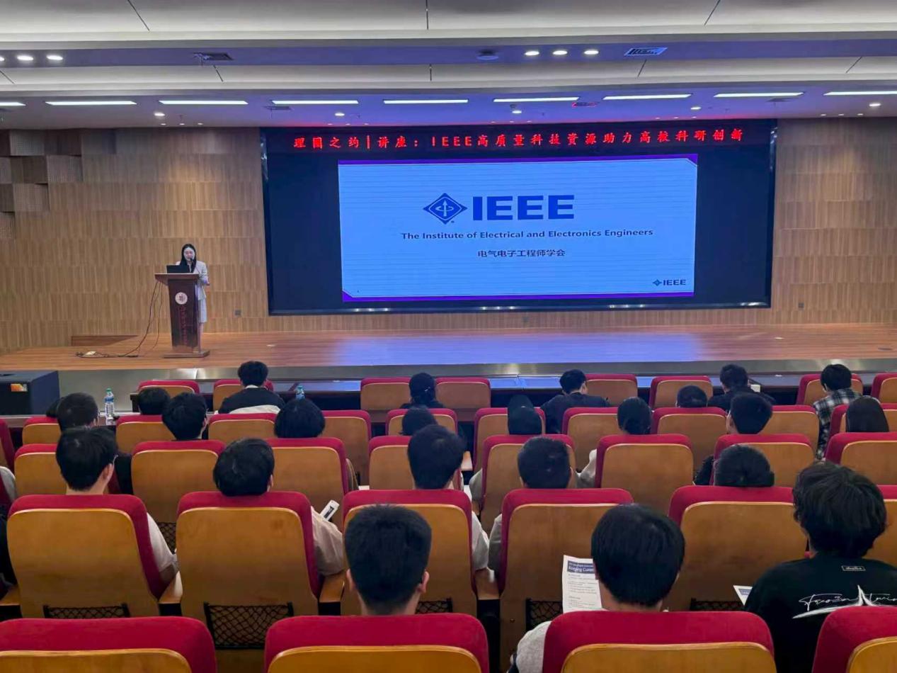 本网讯 11月7日,校图书馆联合电气工程与自动化学院、信息工程学院、机电工程学院在三江校区(东园)图书馆报告厅举办《IEEE高质量科技资源助力高效科研创新》专题讲座。讲座特邀IEEE产品培训师张晨曦主讲,她围绕追踪前沿技术热点把握领域发展态势、文献高效检索方法、科技论文写作与投稿策略等内容展开系统讲解,为师生带来一场内容丰富、实用性强的学术资源培训。