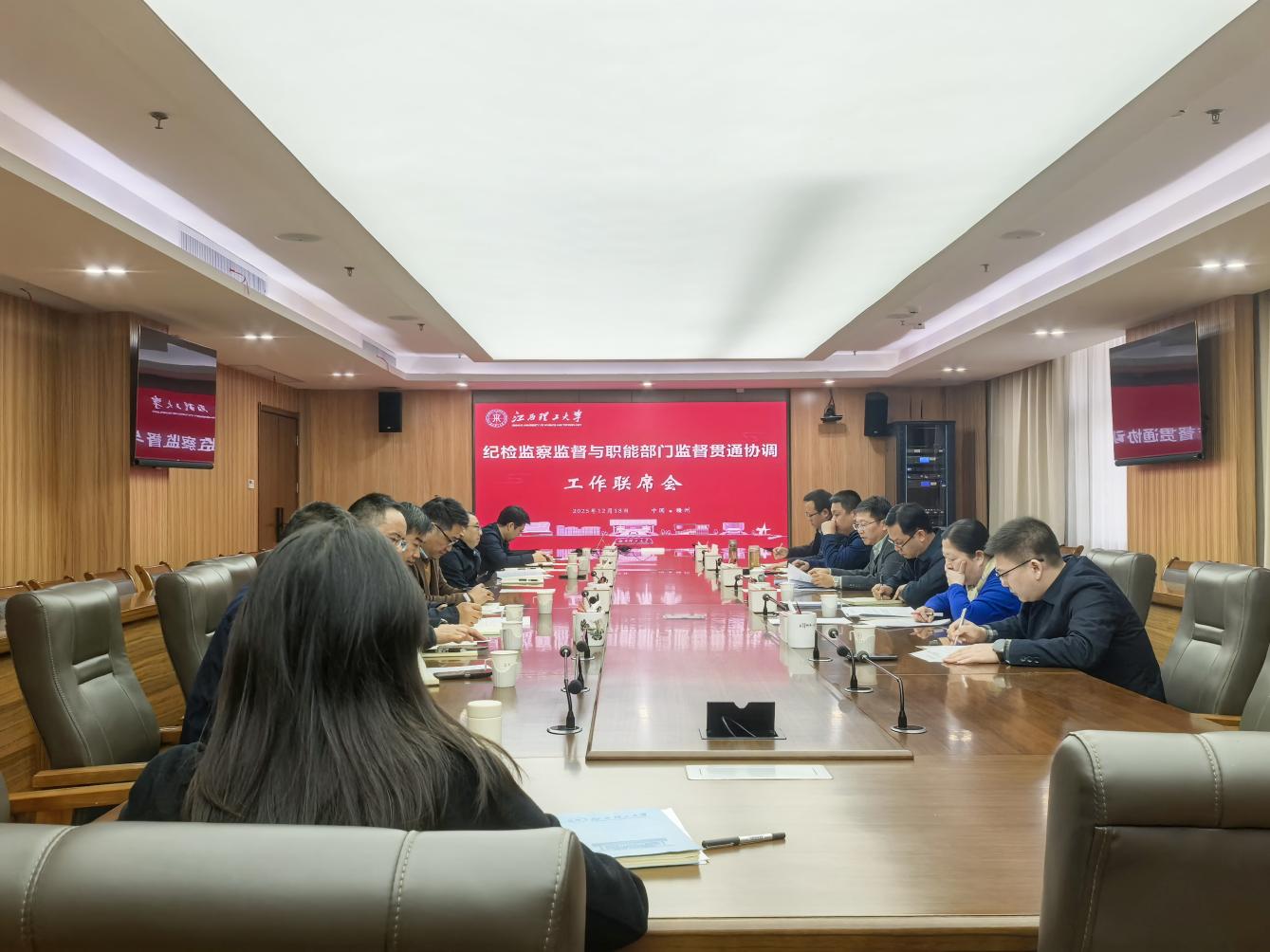 本网讯 12月18日,裸聊直播 召开纪检监察监督与职能部门监督贯通协调工作联席会。校党委常委、纪委书记、监察专员刘飞,校党委常委盛晓明、汪锋锁出席会议,相关职能部门负责人参加会议。